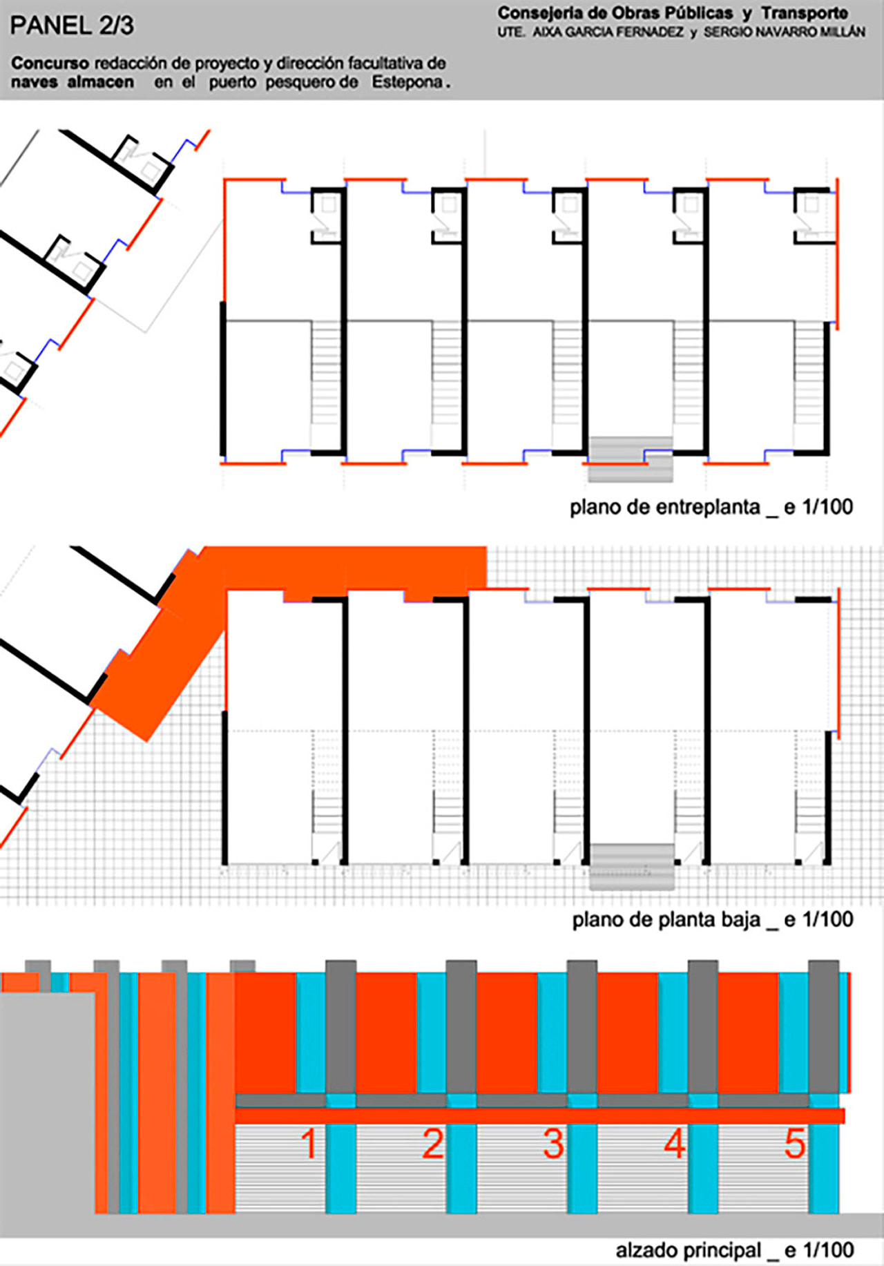 En el puerto marítimo de Estepona se planteó, para un concurso de arquitectura, pequeños espacios a dos altura con una fachada distinta pero muy seria y elegante.